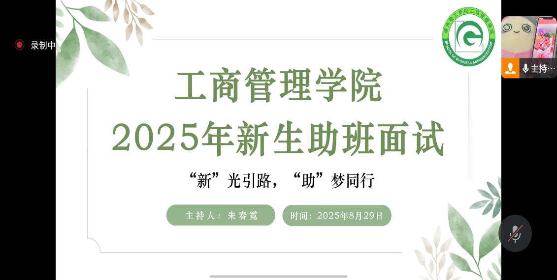 (王诗琦,何玟静)8月29日,公司组织开展 2025 年新生助班线上面试,会议由朱春霓同志主持。此次面试旨在遴选一批综合素质硬、服务意识浓的优秀员工,担任新生们的“第一盏灯”。