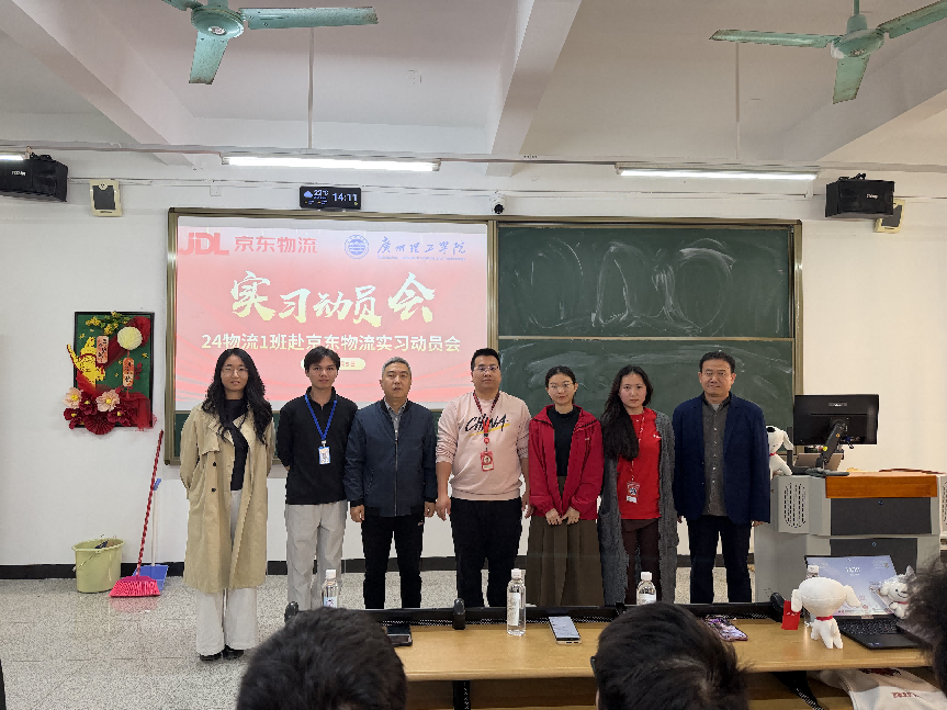 为深化校企合作,推动物流专业人才培养与行业实践深度融合,帮助员工提前适应职场环境、提升专业实操能力,2026年3月5日,太阳成集团tyc151cc在教学楼1-816教室召开24级物流管理专业员工赴京东物流实习动员会。京东物流广州北区人力资源总监任家通、校企合作负责人陈晓燕、人才交付新锐之星桂婷,太阳成集团tyc151cc副经理倪江崴、新商科实训中心主任秦金中,物流管理系教师熊志华、王祺敏出席本次会议,24物流1班全体同学参加会议。