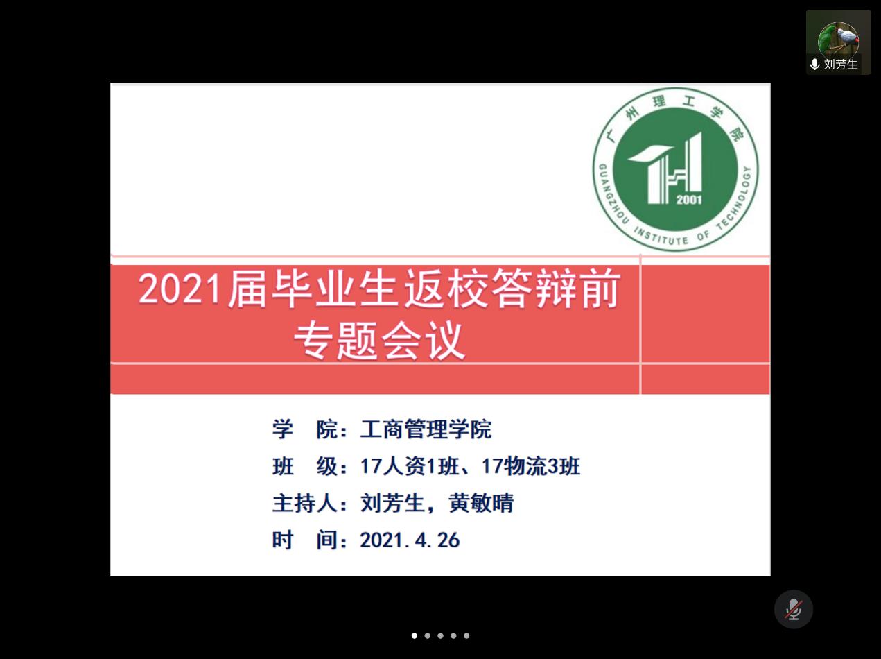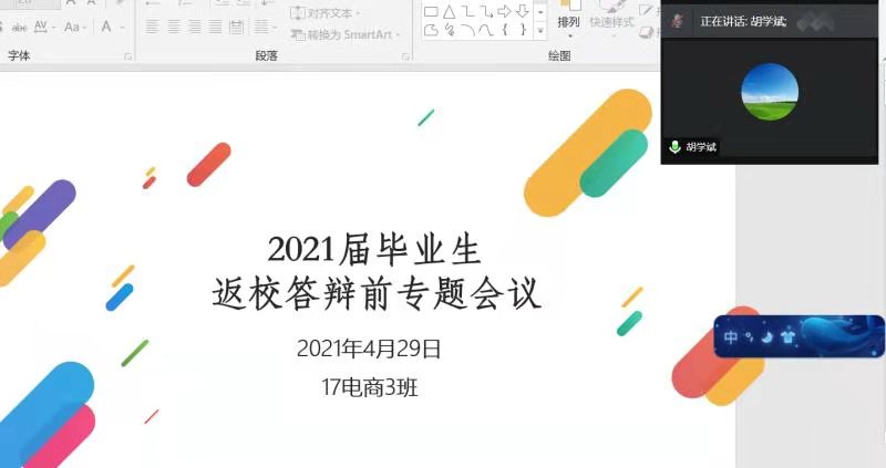 太阳成集团tyc151cc在2020-2021学年第二学期第9周组织各毕业班班导师和辅导员召开各毕业班级返校前的线上会议,班导师讲解答辩注意事项,辅导员讲述近期毕业工作安排。
