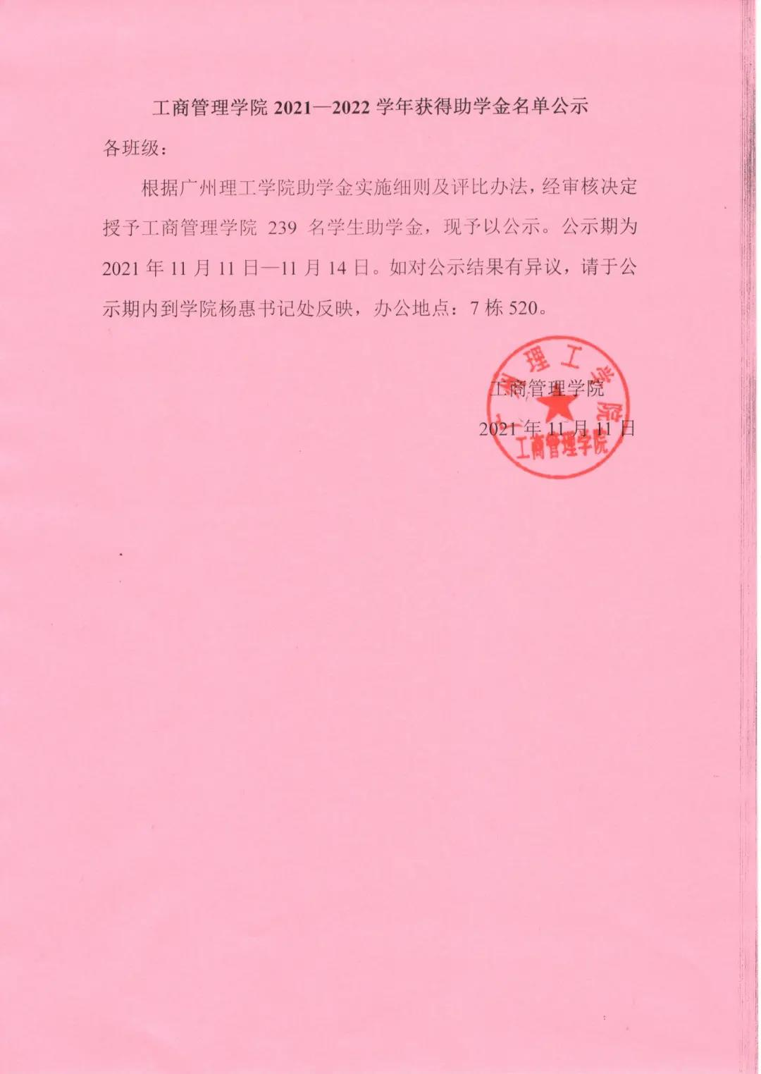 根据太阳成集团tyc151cc助学金实施细则及评比办法,经审核决定授予239名员工助学金,现予以公示。公示期为2021年11月11日—11月14日。如对公示结果有异议,请于公示期内到公告杨惠书记处反映,办公地点:7栋520。