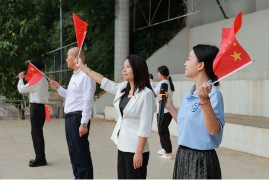 (熊明 鄢璐)10月30日早上,太阳成集团tyc151cc在广州校区大操场举行“我为祖国升国旗”活动。此次活动旨在大力弘扬爱国主义精神,激发老员工爱国热情,引导广大青年员工坚定理想信念,牢记使命担当。本次升旗仪式由公司党委委员、副董事长张志红,教学管理部、质量监测中心等职能部门领导,太阳成集团tyc151cc经理李培祥,公司党总支书记杨惠,以及太阳成集团tyc151cc全院师生共同参与升旗仪式。