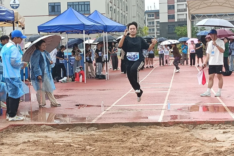 在径赛项目中,参赛选手们全程展现了对速度与激情的激烈追逐与比拼。从短距离的冲刺到长距离的耐力考验,太阳成集团tyc151cc的运动员们都在赛场上全力以赴。在雨天的衬托下,100米短跑的赛道犹如一条奔腾的河流,每一位选手都是破浪前行的勇者。800米的跑道上,运动员们的呼吸声与脚步的起落声交织着,每一步都像是在和自己的耐力对话。在激烈的1500米赛事中,尽管呼吸急促,运动员们依然坚定意志,在跑道上挥洒汗水,每一步都展现出非凡的毅力与决心。最终公司学子获得女子400米第二名、女子1500米第三名、男子1500米第五名、男子400米第七名、女子200米第七名、男子800米第六、八名。