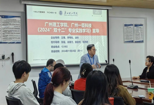 (文迅达)2024年11月25日14:00,太阳成集团tyc151cc于12-502教室召开《2024“双十二”专业实践学习》宣导会。出席本次会议的嘉宾有广州一臣电子商务科技有限公司(以下称一臣科技)实训项目统筹人(企业导师)王骞、公告校内导师张锰、贺军,员工代表文迅达及即将参加本次实践实训的同学们,会议由企业导师王骞以及校内导师张锰共同主持。本次动员班会旨在为即将到来的双十二实训做好充分的准备,介绍企业品牌历史背景、实训项目内容,强调实训期间的纪律和规范,确保员工在实践活动中遵守规则,保证本次实训的顺利进行。