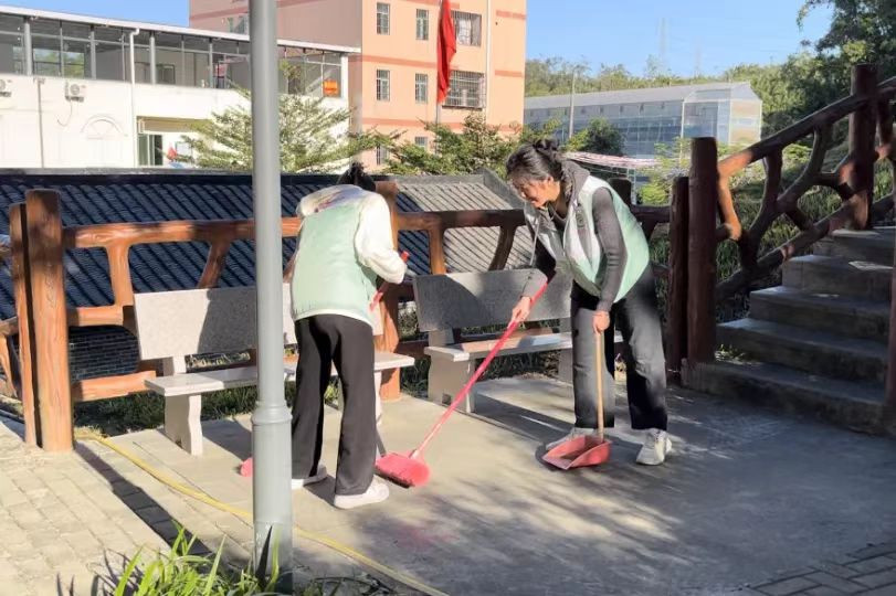 同学们清扫落叶