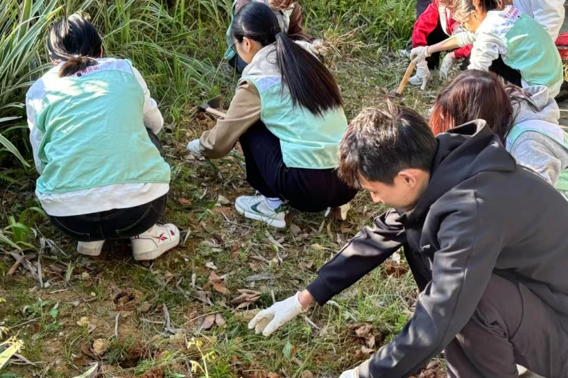 在参观学习后,全员前往西罗乡抗日民主政府旧址的后山,展开除草护绿、清扫整洁劳动实践活动。他们认真地清扫地面上的落叶,弯腰俯身,耐心地拔除地上的杂草,努力践行新时代青年的劳动精神与社会责任感,让这片土地的历史记忆更加清晰。
