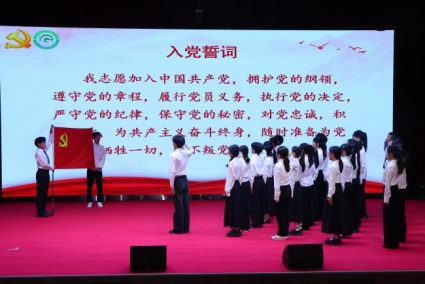 随后由侯健同志带领各位党员重温入党誓词。在台上,党员们庄严肃立,右拳高举,声音洪亮,眼神坚定,表达着为共产主义奋斗终身的决心。
