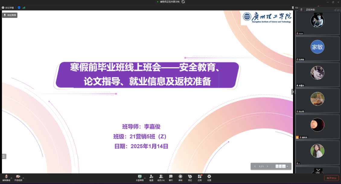 此次就业主题线上班会为2025届毕业生提供了就业指导和帮助,有效提升了同学们的信心和动力,给下阶段毕业和就业工作的顺利开展做好了铺垫。祝各位毕业生都能找到理想的工作,顺利完成毕业论文,全力以赴,顺利毕业,奔向更美好的未来。