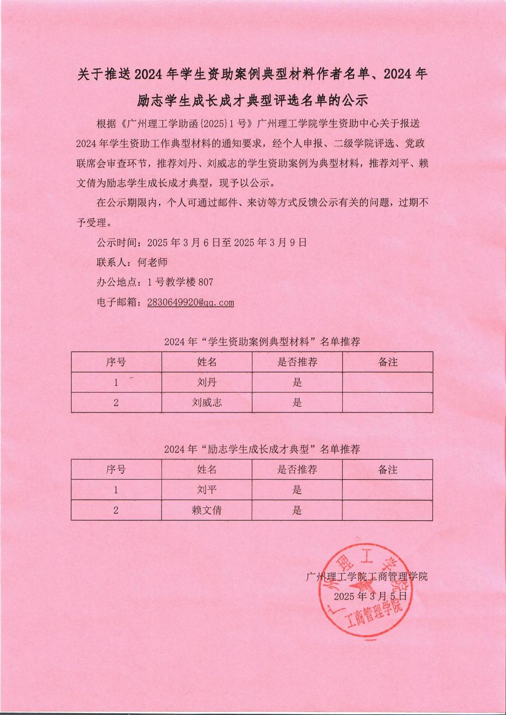 关于推送2024年员工资助案例典型材料作者名单、2024年励志员工成长成才典型评选名单的公示