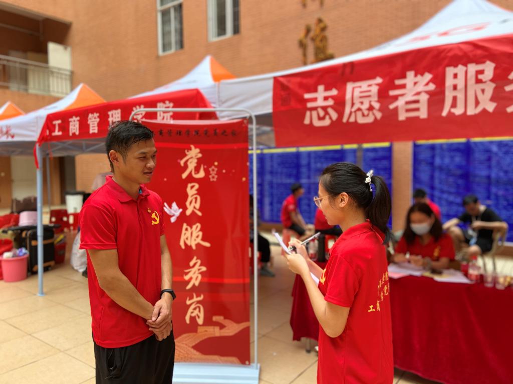 早上6:20,员工党支部准时集结完毕。党员同志身穿党服、佩戴党徽,各司其职,有条不紊地协助着专插本迎新工作。为了能够让所有工作人员以充沛的精力、饱满的热情来迎接新生,党支部同志早早到达饭堂搬运早餐。在7栋大本营处,公司设立了党员服务岗,接待新生和提供信息咨询。党员志愿者们为新生们指引道路,讲解注册流程,帮忙搬运行李,热忱地接待每一位到校的新生。员工第二党支部预备党员陈德源同志主动开私家车协助搬运行李,发扬大爱无私的精神,受到公司领导及师生的高度赞扬。员工党员对新生报到工作表现积极主动、热情周到,体现了吃苦耐劳的服务精神,发挥了党员的先锋模范作用。