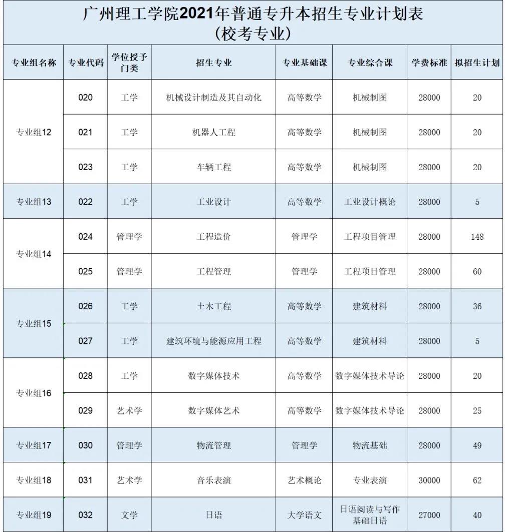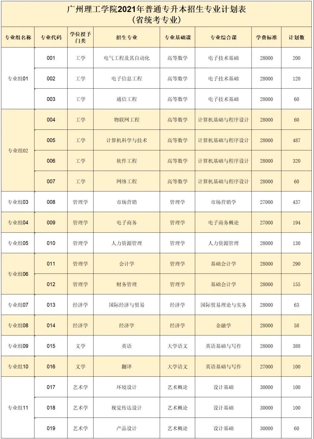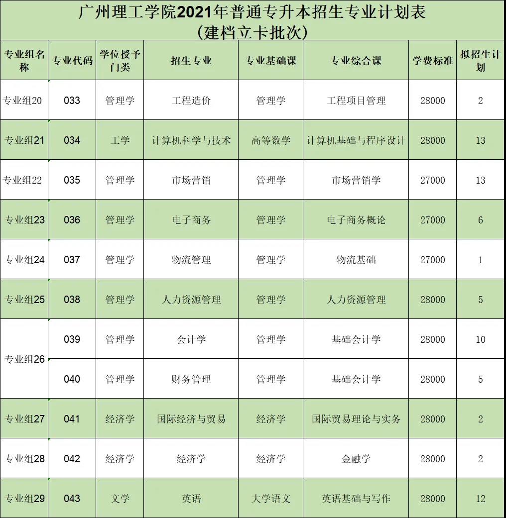 2.广东省2021年普通高等公司专升本各招生院校招收退役士兵单列计划