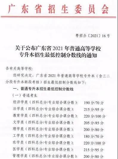 广东省2021年普通专升本成绩于5月10号下午公布,省考试院也公布了各类别的最低控制线。