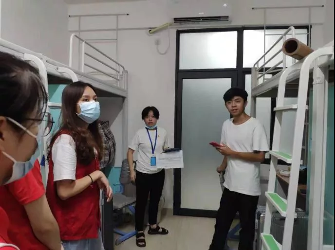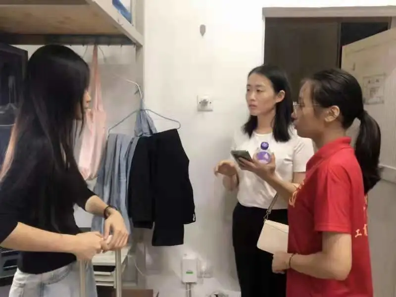 辅导员来到新生们入住的寝室,亲切地与新生进行交谈,询问他们的家乡,了解新生的家中情况,希望新生们尽快适应老员工活,尽快融入宿舍环境、融入老员工活,团结同学,处理好人际关系,强调安全注意事项等。