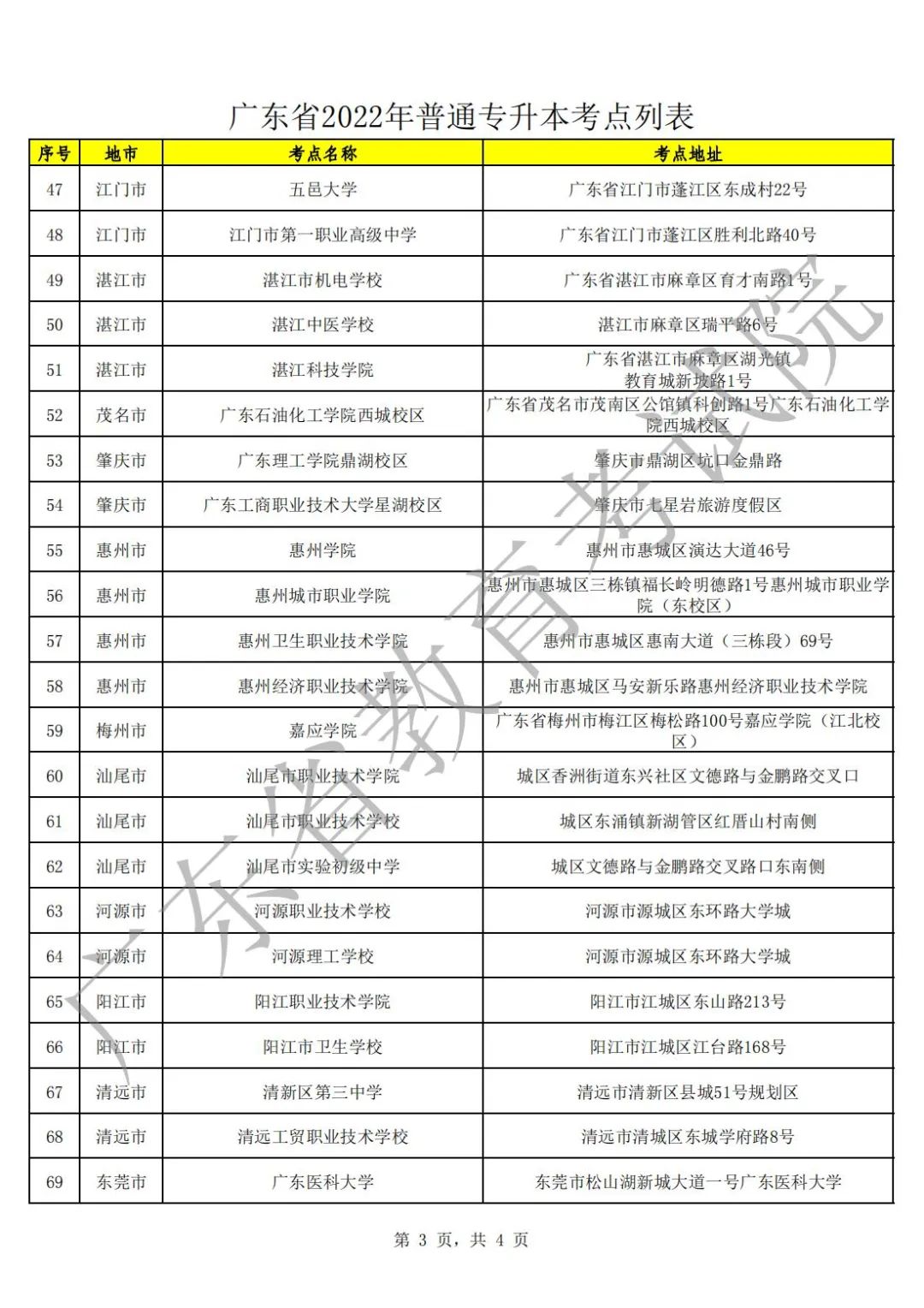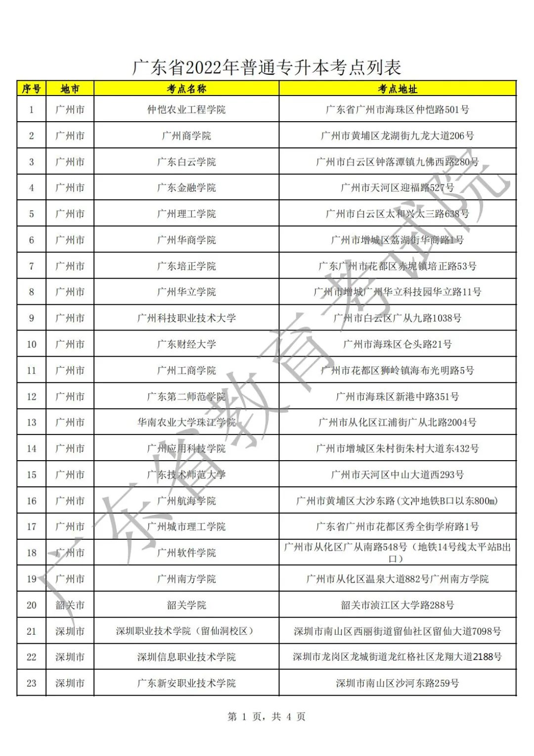 我省2022年普通高等公司专升本考试和三二分段专升本转段考试(以下统称普通专升本考试)将于4月27日至28日进行。为方便考生赴考,减少考生跨市流动,今年我省普通专升本考试在21个地市分设考点,根据考生申报的考试地点(地市)安排考试,各地考点名单见附表。4月21日15:00起,考生可登录普通专升本报名系统(网址:http://www.eeagd.edu.cn/ptzsbks)打印准考证。