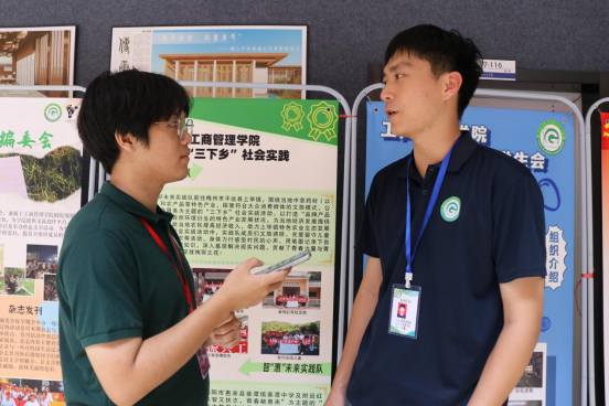 记者对助班王鑫进行采访