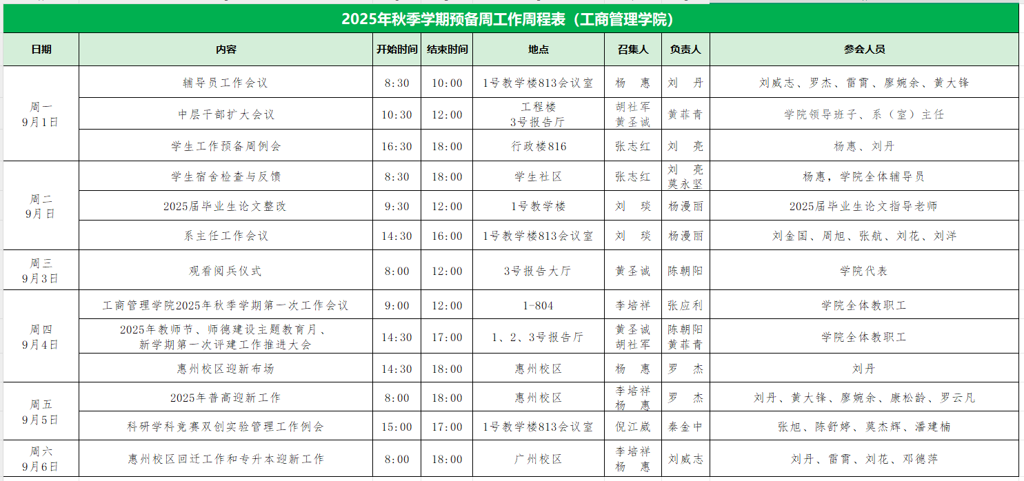 2025年秋季学期预备周工作周程表