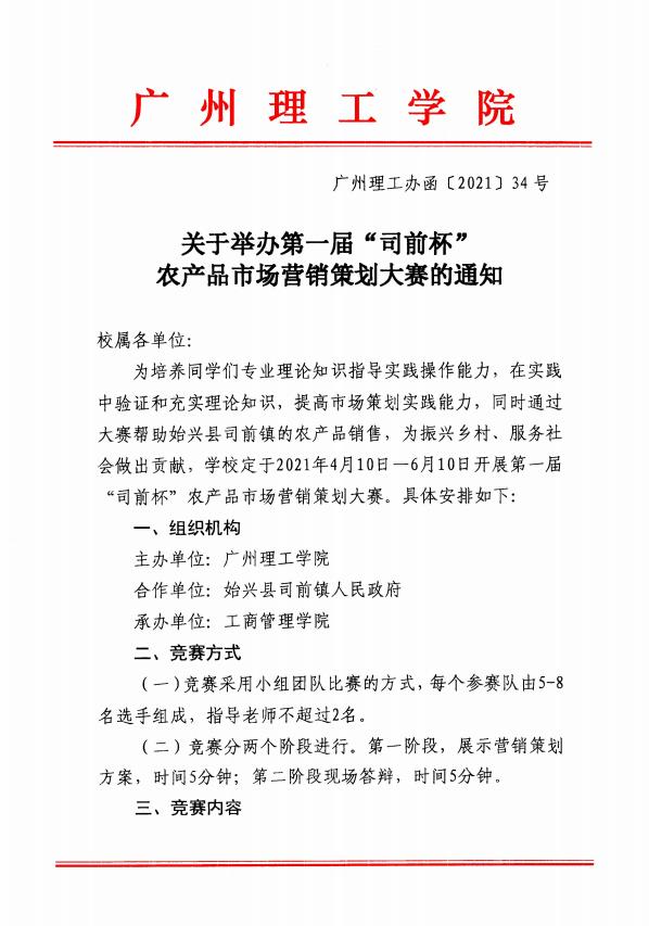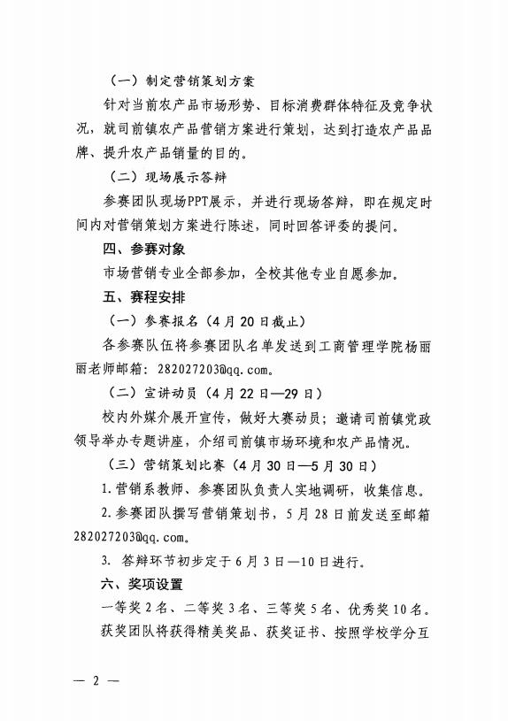 关于举办第一届“司前杯”农产品市场营销策划大赛的通知