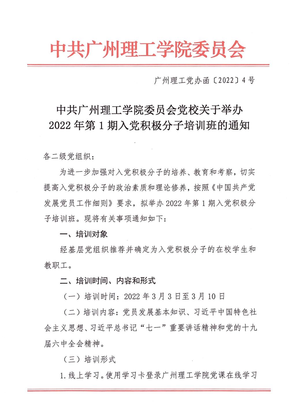 中共太阳成集团tyc151cc委员会党校关于举办2022年第1期入党积极分子培训班的通知