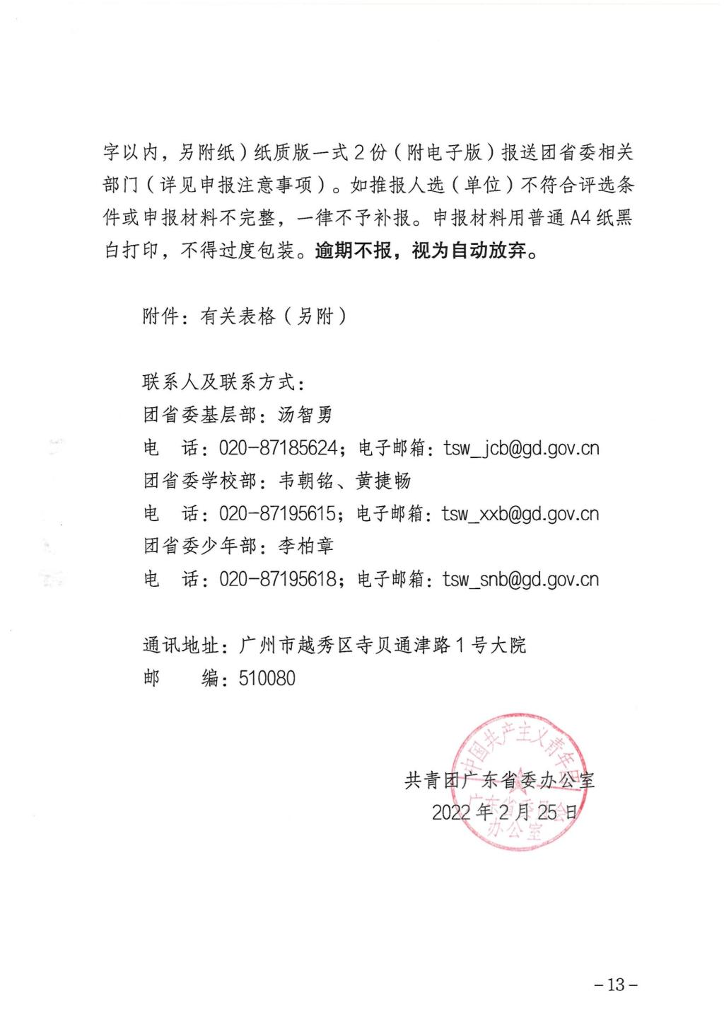 转发团省委关于做好2021-2022年度广东省五四红旗团委(团支部)、优秀共青团员、优秀共青团干部等推荐工作的通知