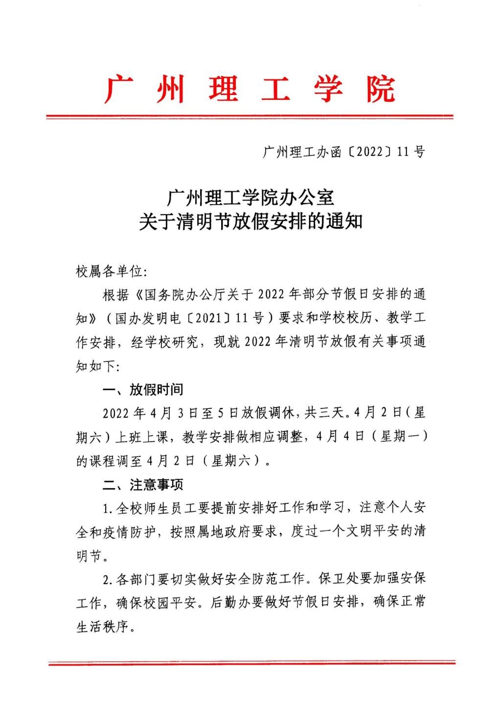 太阳成集团tyc151cc办公室关于清明放假安排的通知