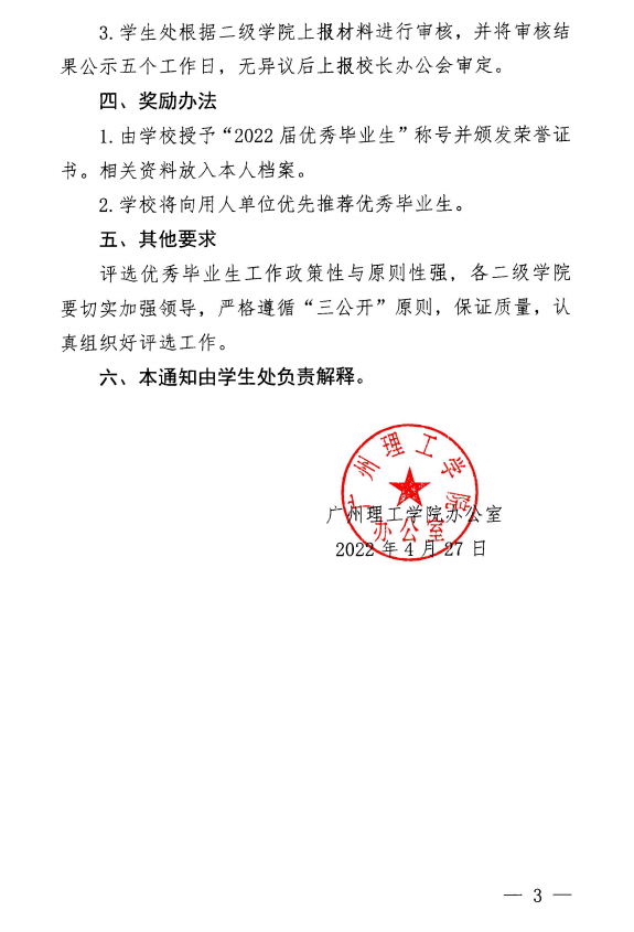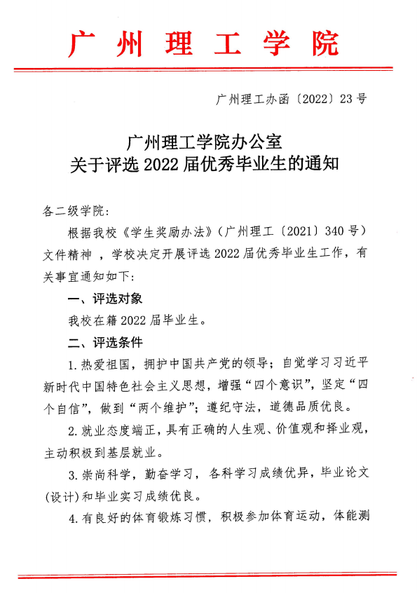 太阳成集团tyc151cc办公室关于评选2022届优秀毕业生的通知
