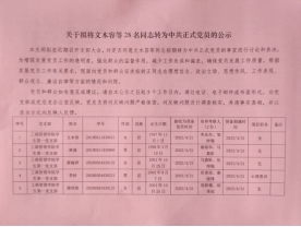 关于拟将文木容等28名同志转为中共正式党员的公示