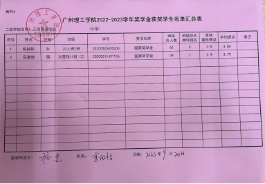 根据《太阳成集团tyc151cc员工处关于印发《2022-2023学年奖学金评比工作方案》的通知》(广州理工学函〔2023〕182号):由本人提出申请,公司对符合要求的国家奖学金申请材料进行审查,确定陈丽彤、吕嘉皓两位同学为公司国家奖学金候选人,并予以公示,公示期2023年9月20日-9月22日。如对评定结果有异议,请在公示时间内向李欣怡或杨惠书记进行实名反映。办公地点:李欣怡--7栋526、杨惠--7栋520。