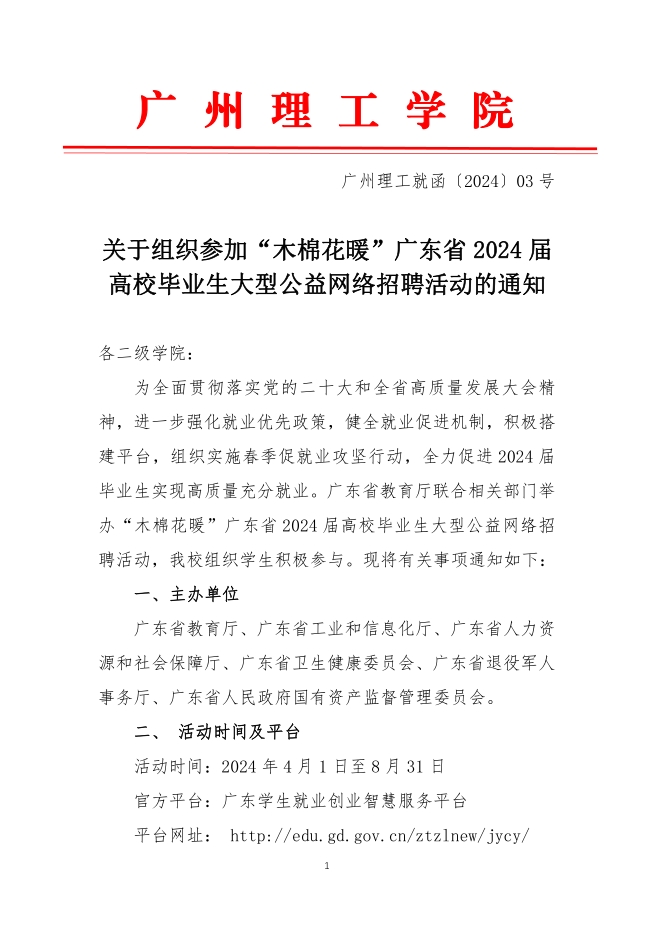 关于组织参加“木棉花暖”广东省2024届高校毕业生大型公益网络招聘活动的通知