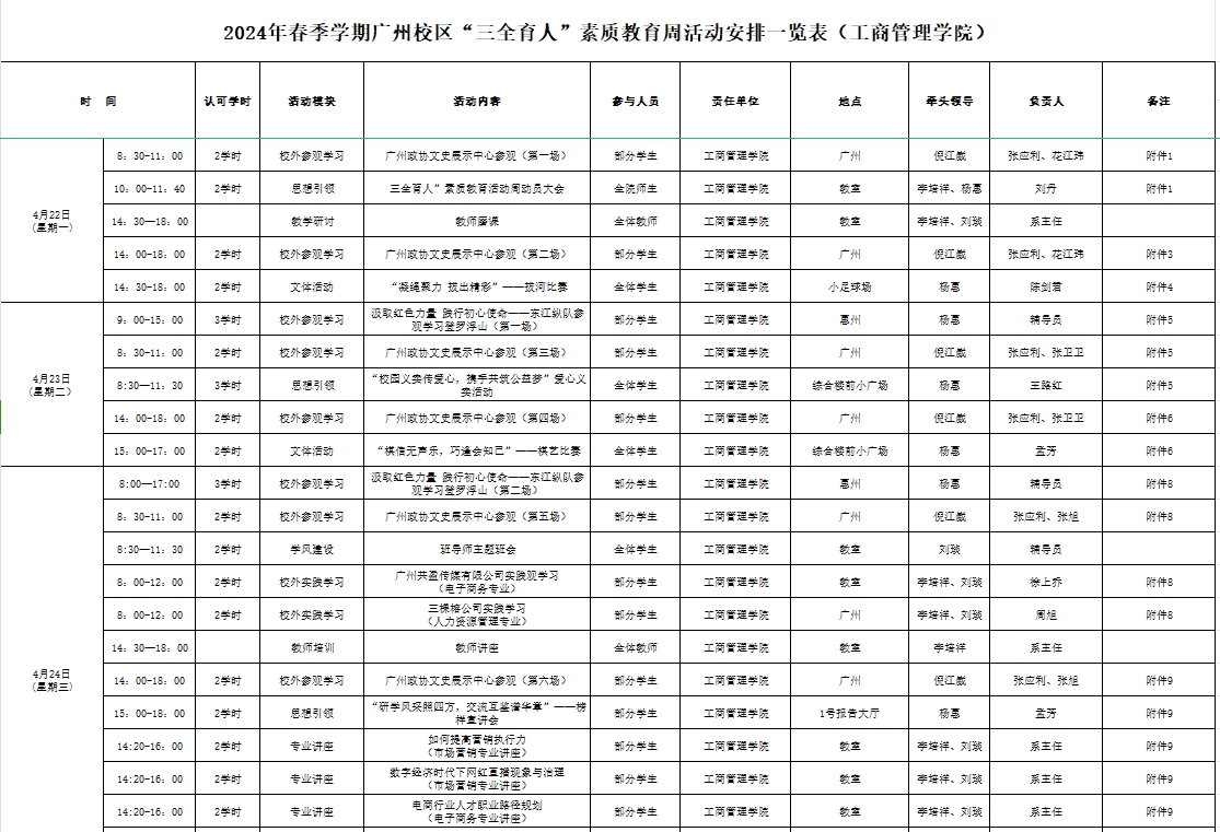 2024春季学期广州校区“三全育人”素质教育周活动安排一览表(太阳成集团tyc151cc).xlsx.xlsx