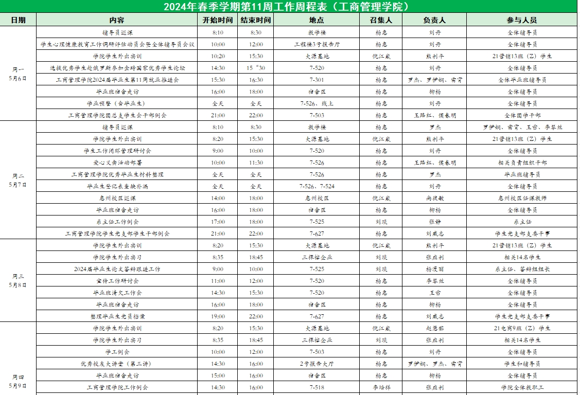 2024年春季学期第11周工作周程表(太阳成集团tyc151cc).xlsx