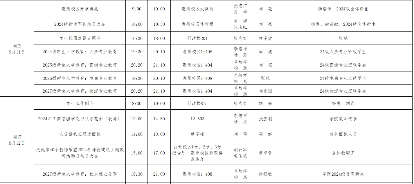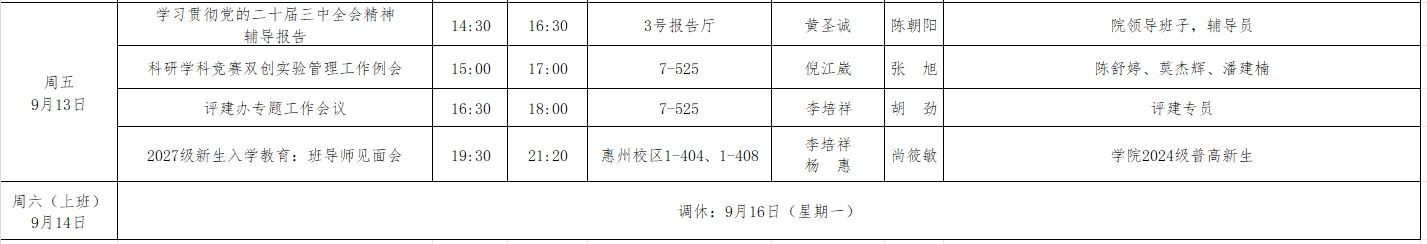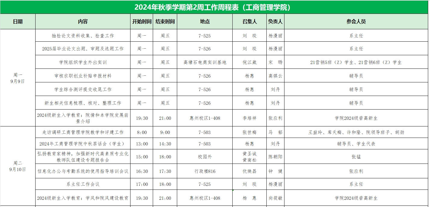 2024年秋季学期第2周工作周程表