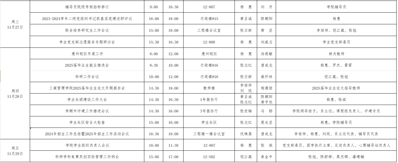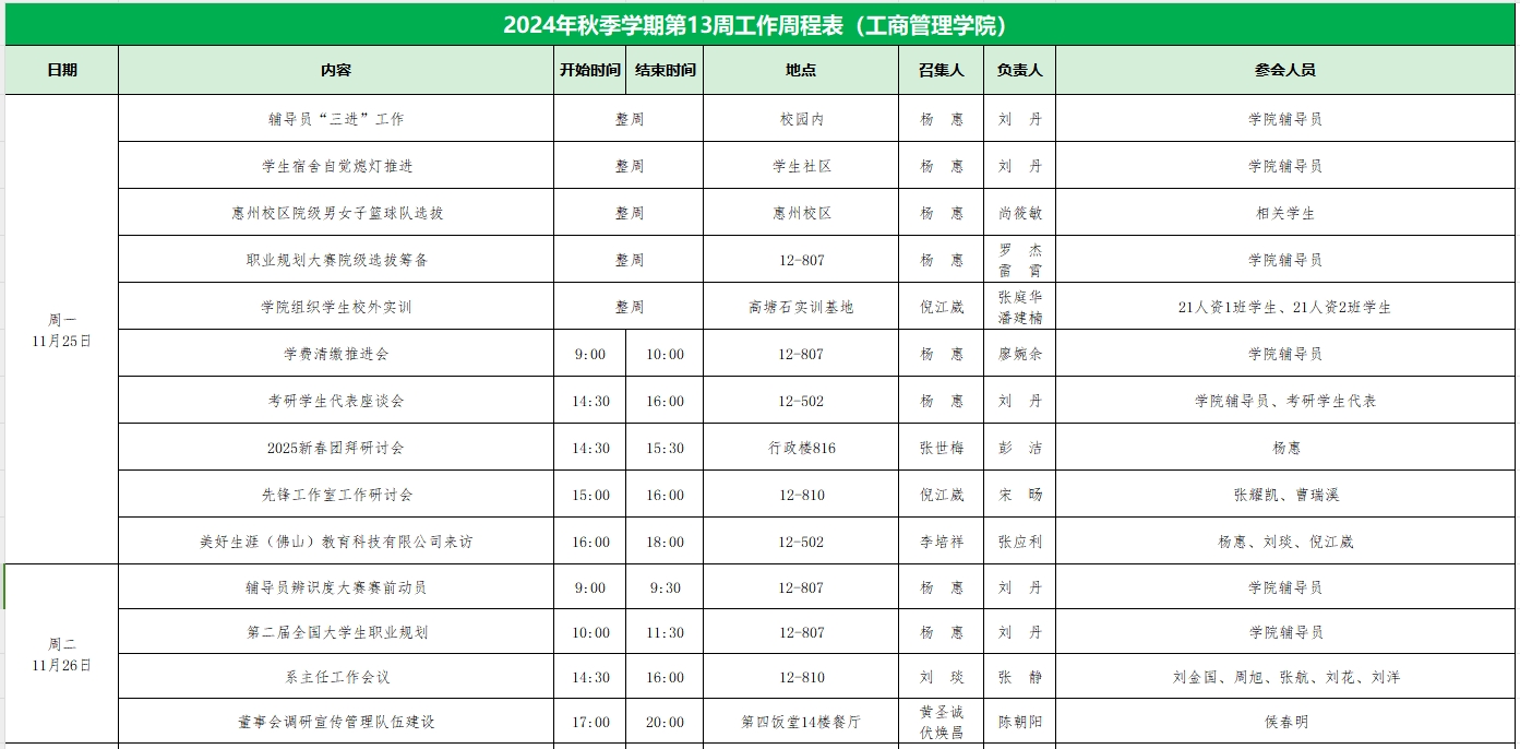 2024年秋季学期第13周工作周程表