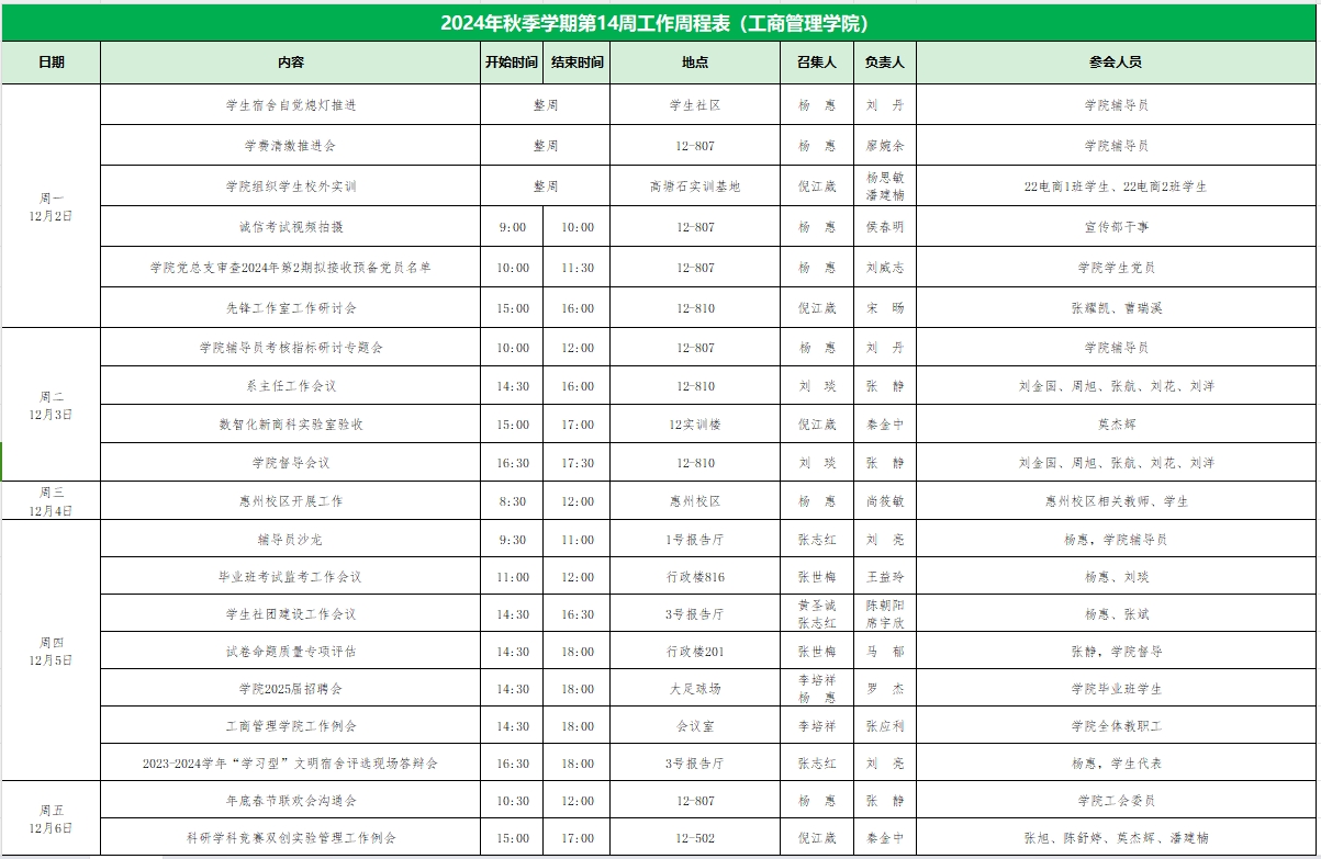 2024年秋季学期第14周工作周程表(太阳成集团tyc151cc).xlsx