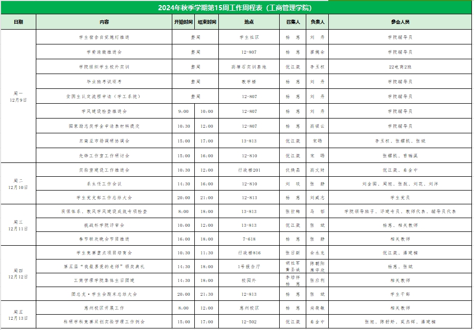 2024年秋季学期第15周工作周程表